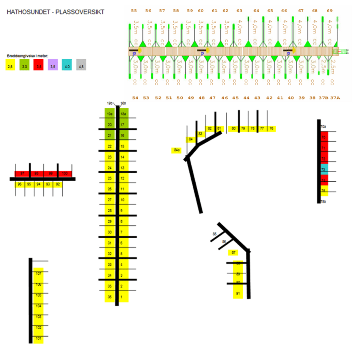 Dette anlegget har 150 av våre båtplasser, og er kjent for sin gode standard og beliggenhet. Her finner du plasser tilpasset ulike båtstørrelser. På verkstedbygget ble det i januar 2023 installert solcelleanlegg som dekker en større del av strømforbruket på marinaen.